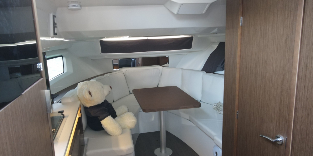 El espacio de estar interior, muy luminoso, se ha adaptado para organizar hermosas escapadas en familia y para pasar que un grupo de cuatro personas disfrute de una noche confortable, gracias al salón transformable en camarote privado y a su camarote de popa doble, sin olvidar el espacioso cuarto de baño con su ducha separada.