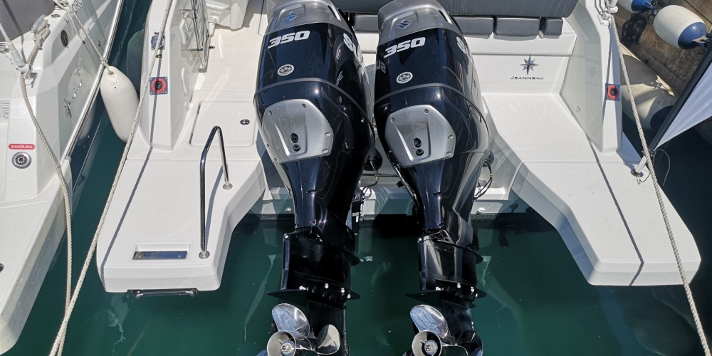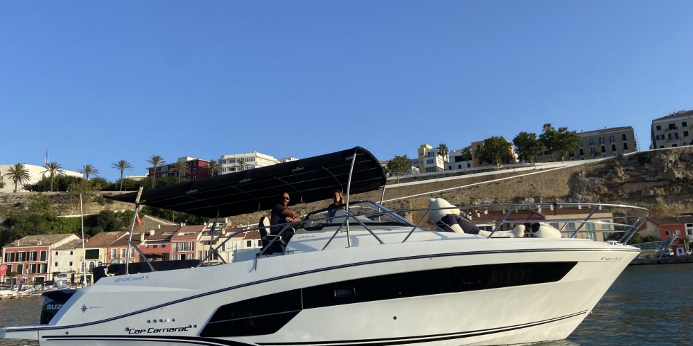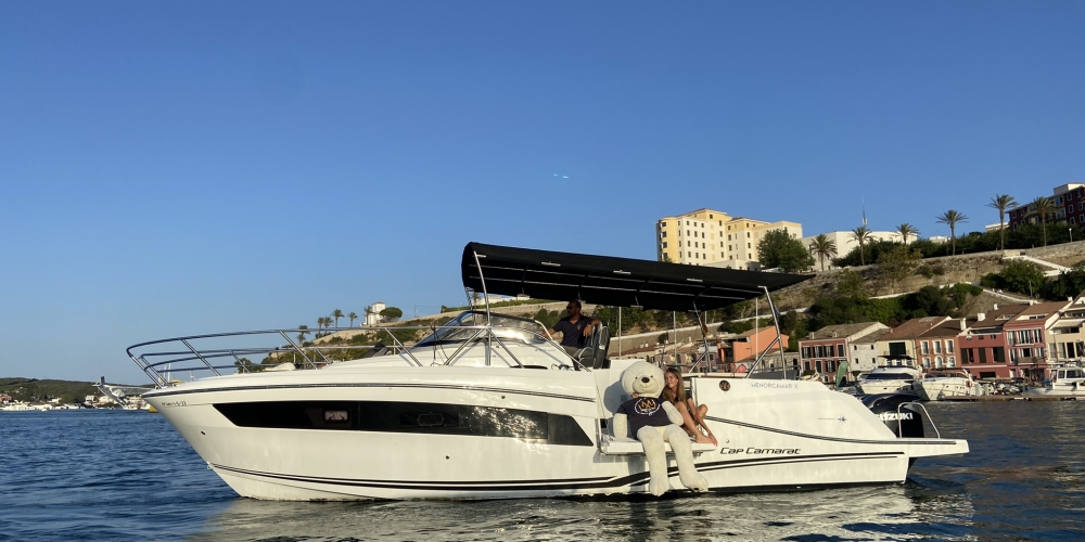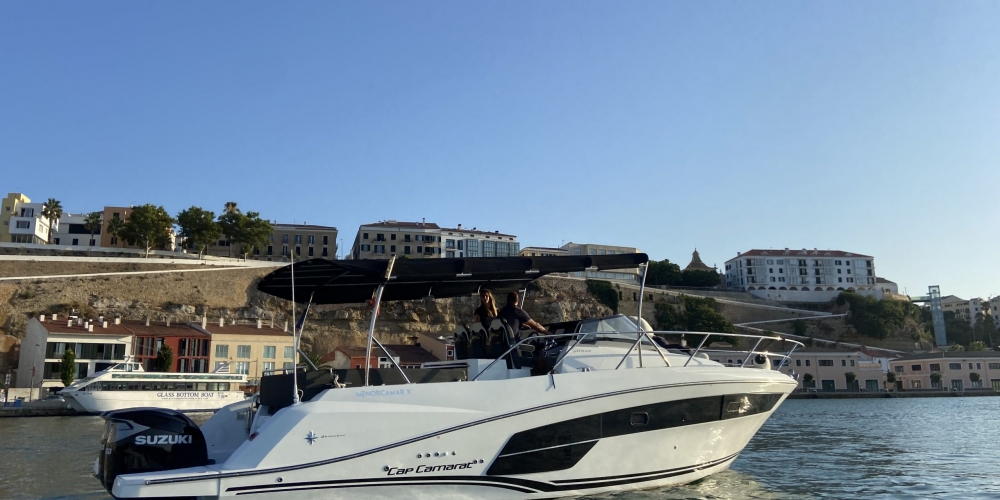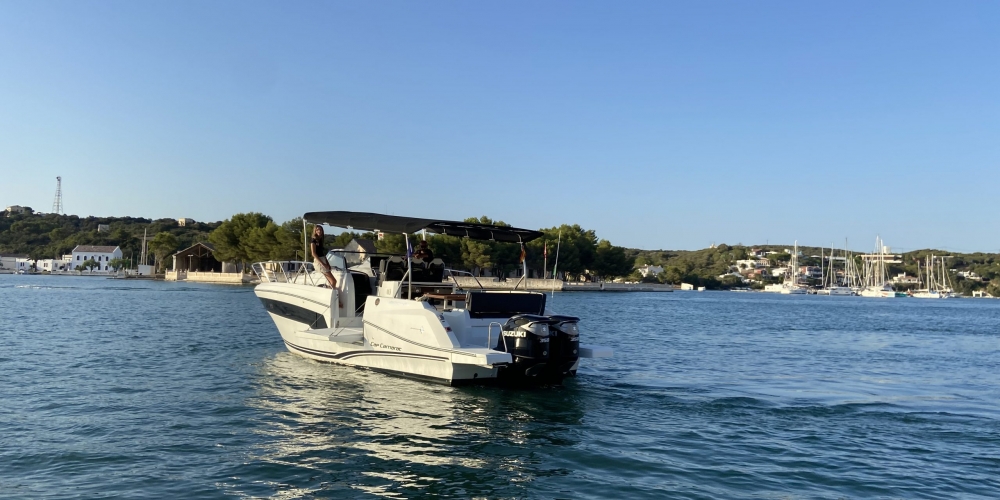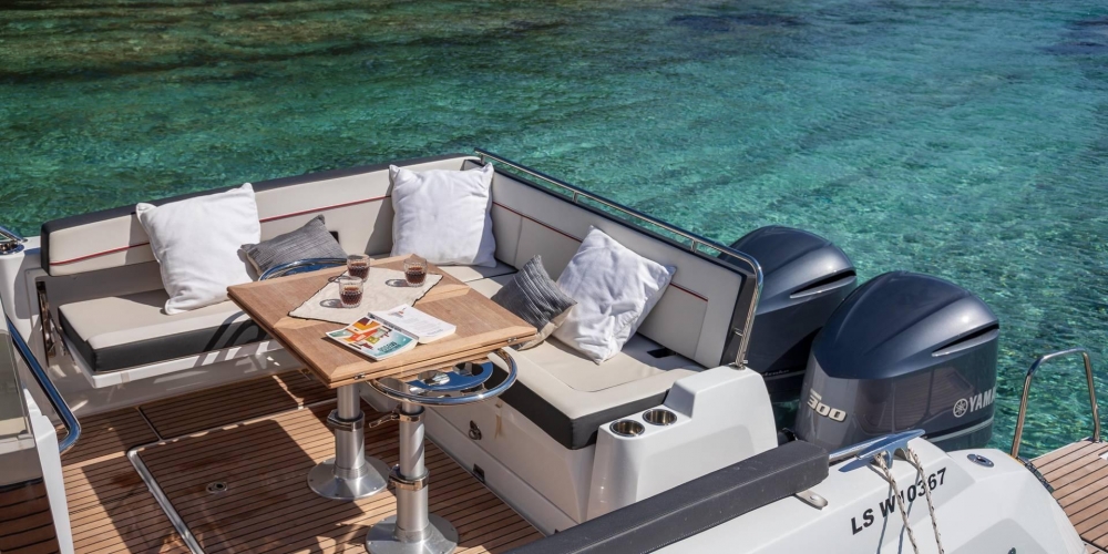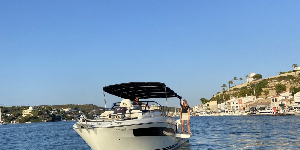 ¡Esta Day-Boat es «el» modelo ideal para alquilar un barco en Menorca y las salidas y chapuzones con los amigos, así como para sus cruceros familiares gracias a sus dos zonas de estar exteriores distintas!