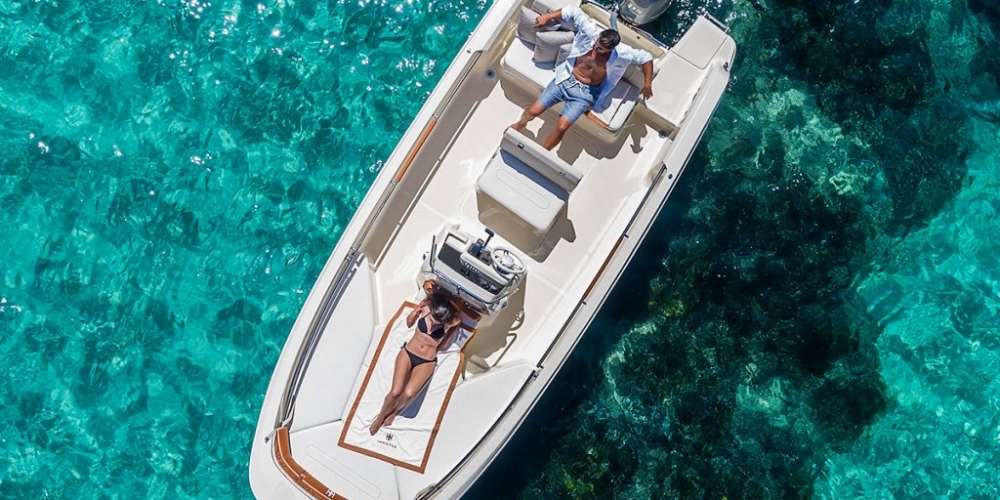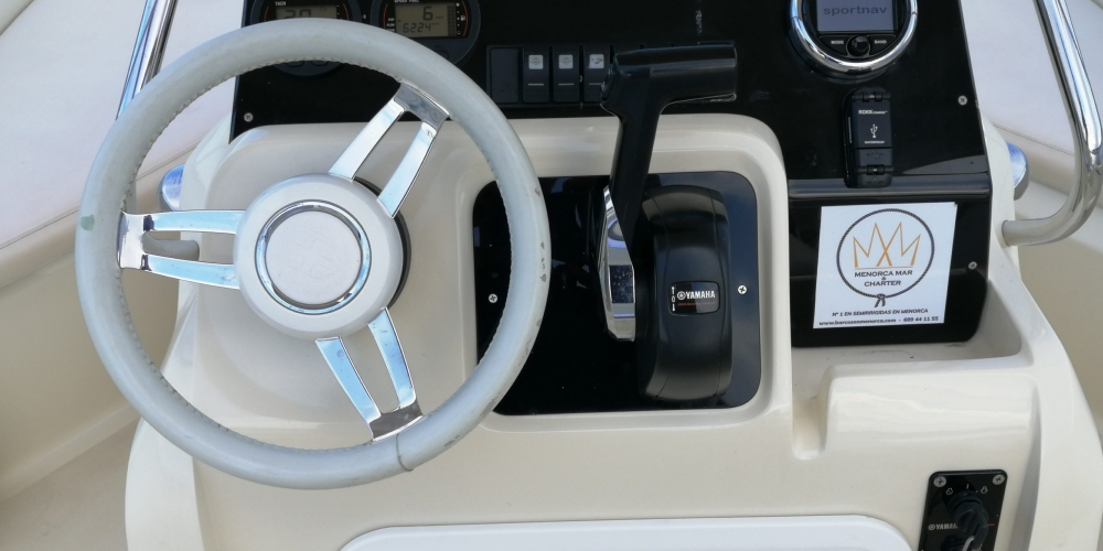 Embarcación muy bonita, llama la atención y además es espaciosa, rápida y cómoda, navegando a alta velocidad, ésta lancha en una de las más estables que se han diseñado nunca, con una relación consumo-velocidad óptima. Es la embarcación ideal para alquilar y disfrutar de la isla de Menorca. El casco está diseñado con formas aerodinámicas y sorprende por su velocidad y navegabilidad, incluso en condiciones extremas.