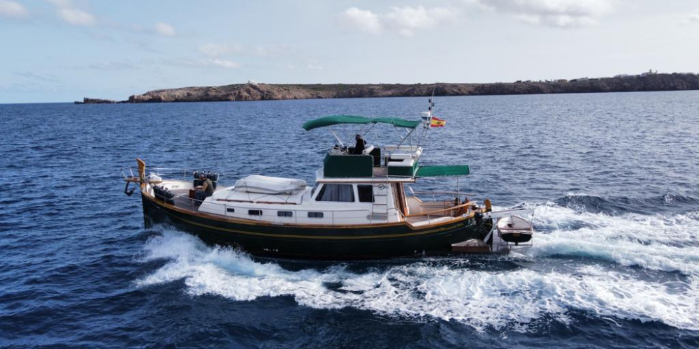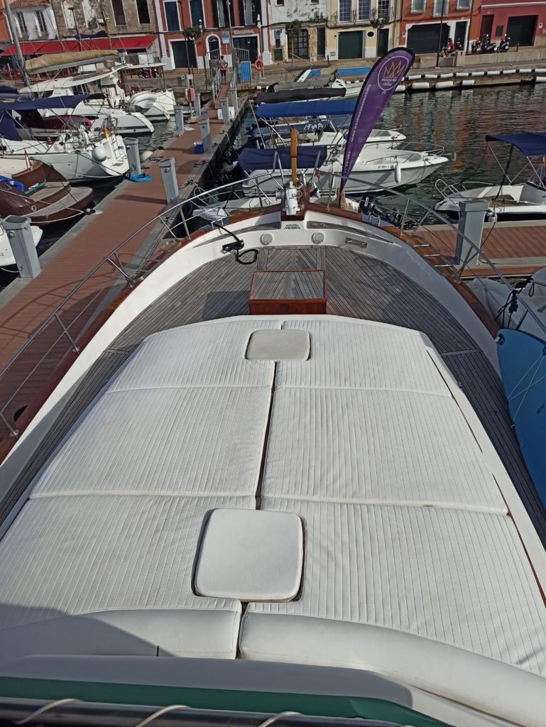 Se alquila en Menorca este Llaud Marved con motor Yanmari 2×315 cv un barco especialmente ágil y sensible.