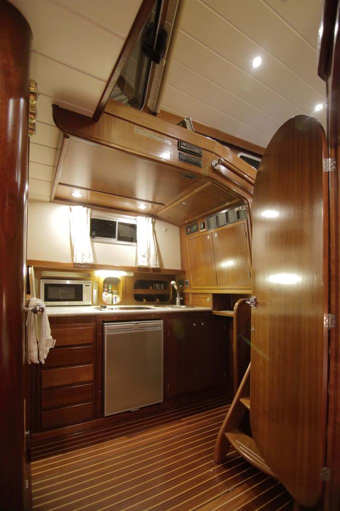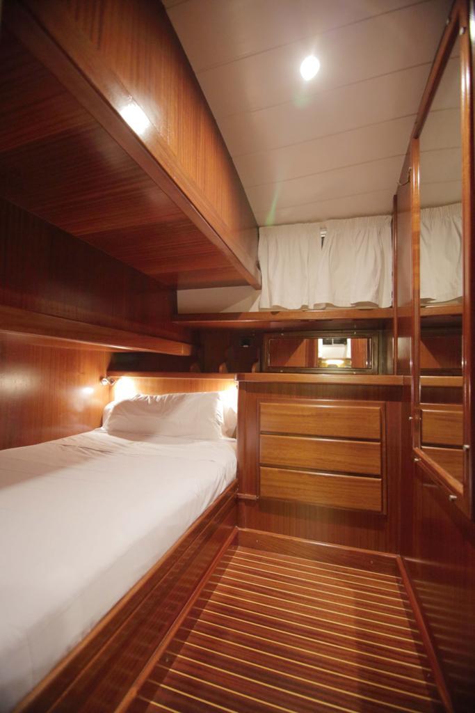 Dispone de un sofá en la popa. Los asientos del piloto y acompañante se abaten hacia adelante para acceder a la cocina. A proa dispone de un solárium para poder tumbarse/sentarse varias personas.