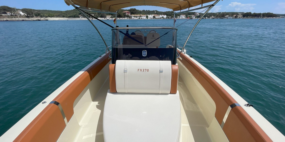 Está equipado con fueraborda y su casco está estudiado para ofrecer un gran rendimiento con total seguridad, incluso con marejada. Es un barco que combina la acción con el lujo, gracias a la refinada selección de colores, materiales y formas que hacen un área de entretenimiento real en el mar. Es por estas razones que la FX 270 ofrece una versión de “ocio” gracias a su amplia y flexible cubierta.