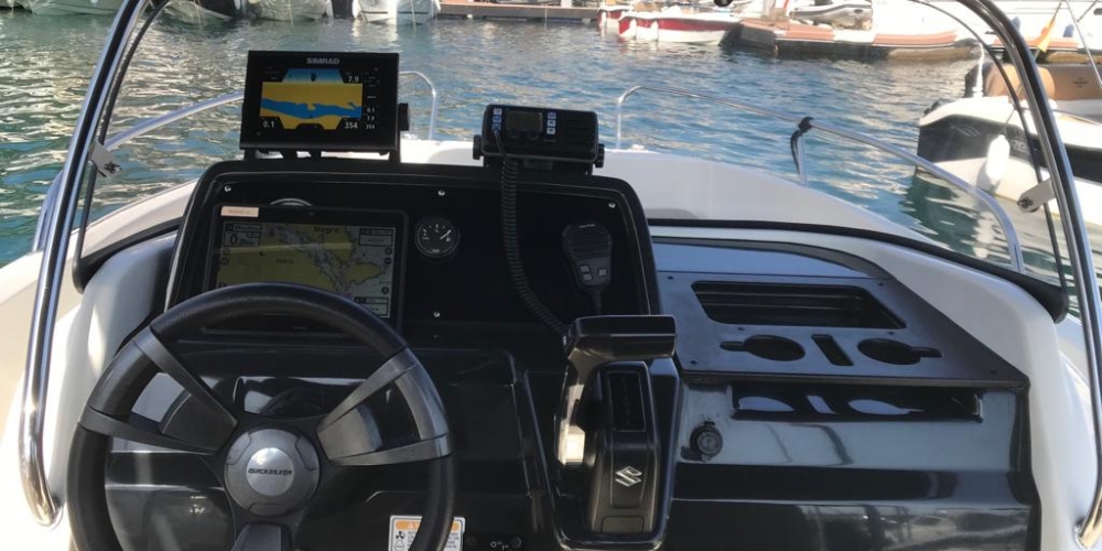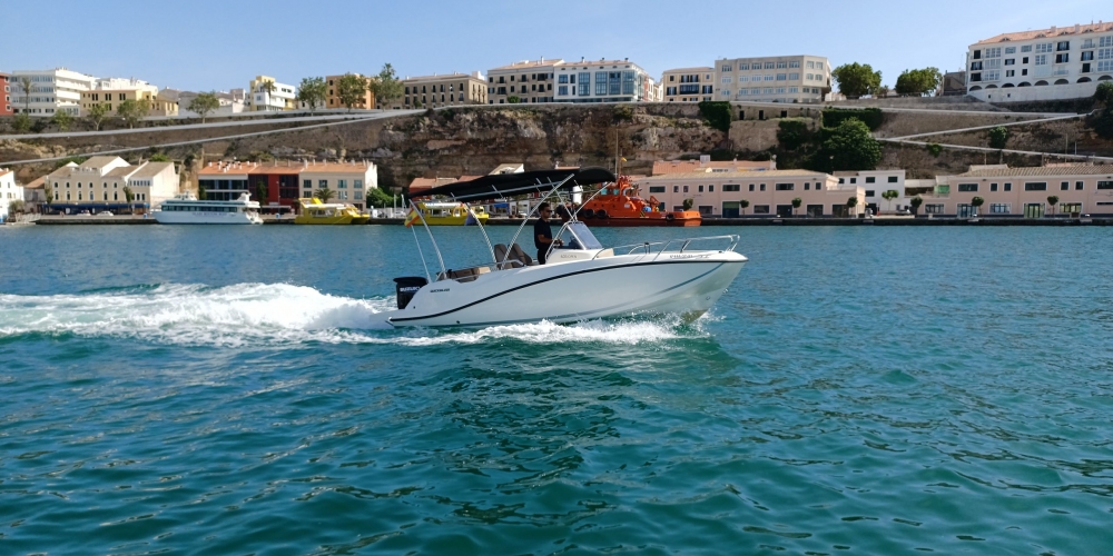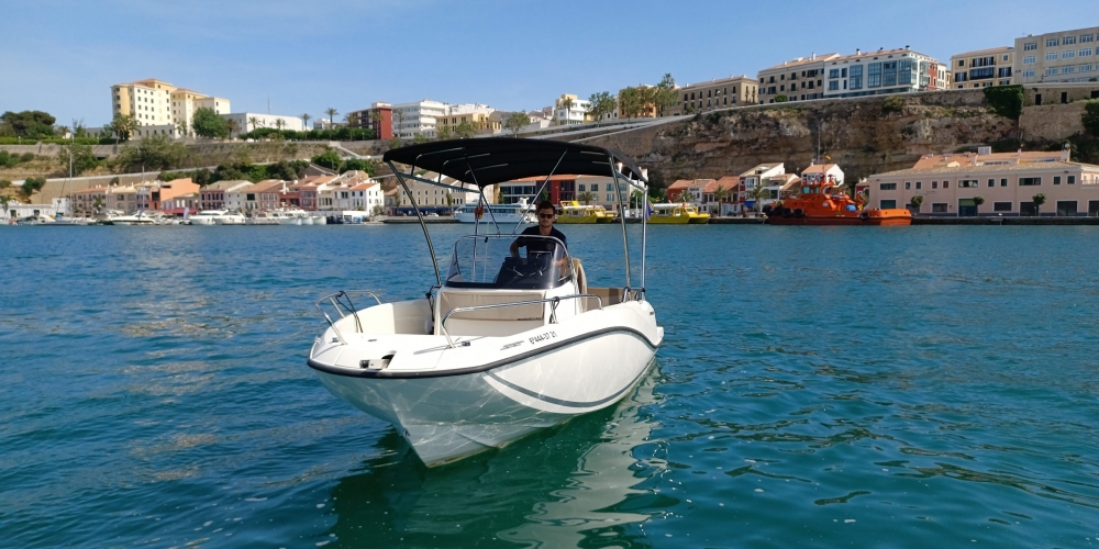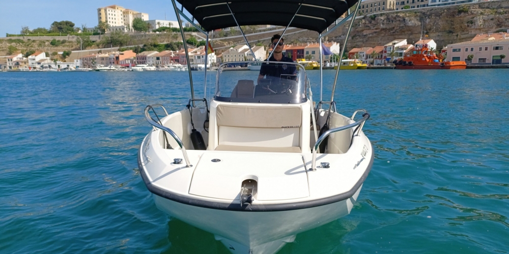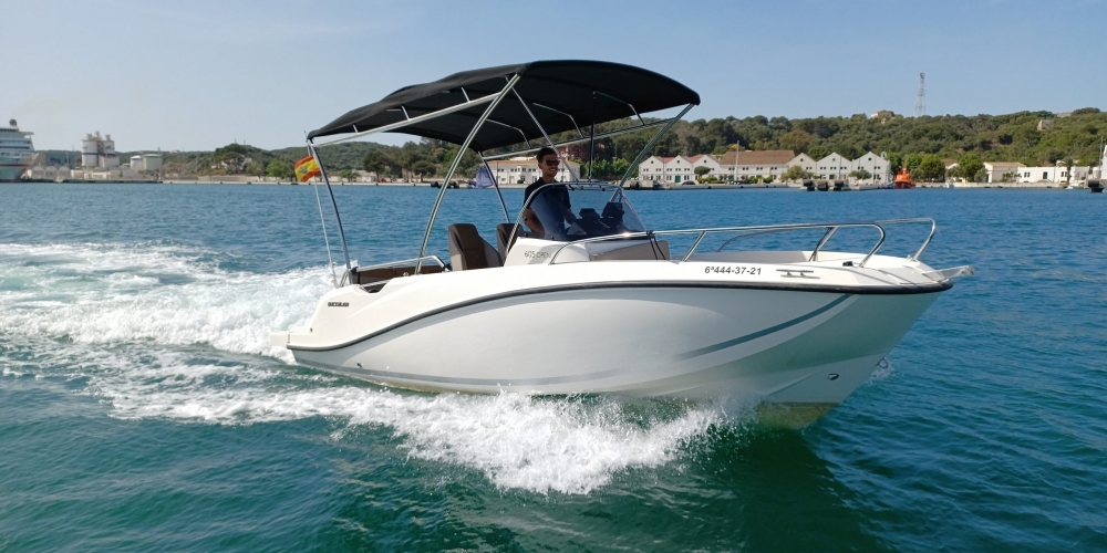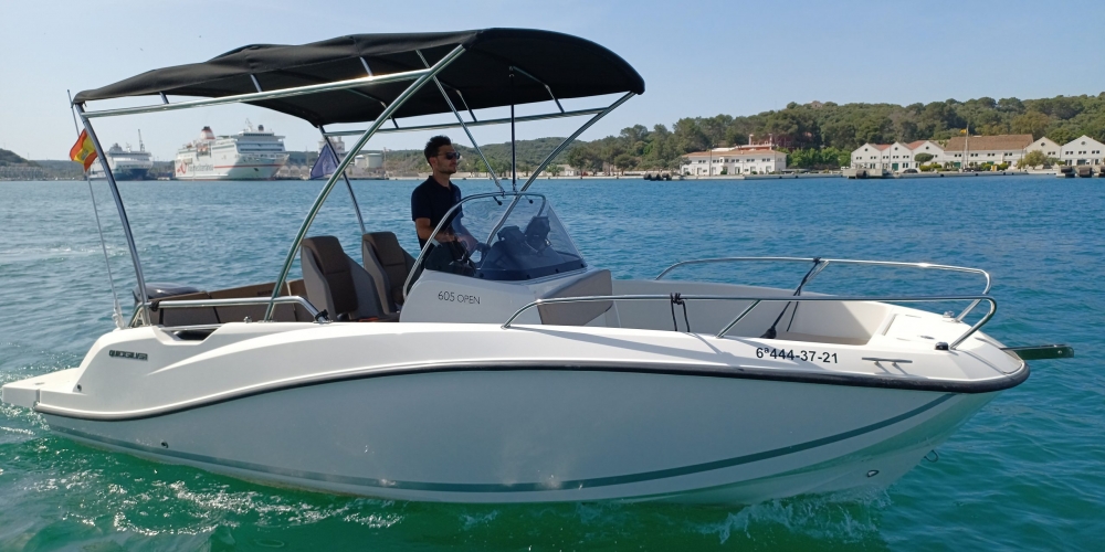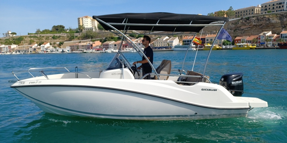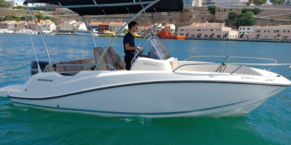 Si te gusta estel modelo y prefieres una cabina puede seleccionar la Quicksilver 605 Open para realizar un Charter en Menorca.