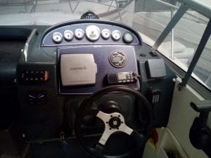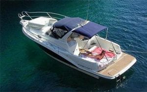 Una barca, spaziosa e molto elegante. Ha un motore Volvo da 250 CV ed è lungo 7,45 metri. La combinazione di colori bianco e blu gli conferisce una linea di design con molto glamour e distinzione per non passare inosservata. Offre la possibilità di una tenda da sole Bimini per un maggiore comfort se si desidera un po’ d’ombra.
